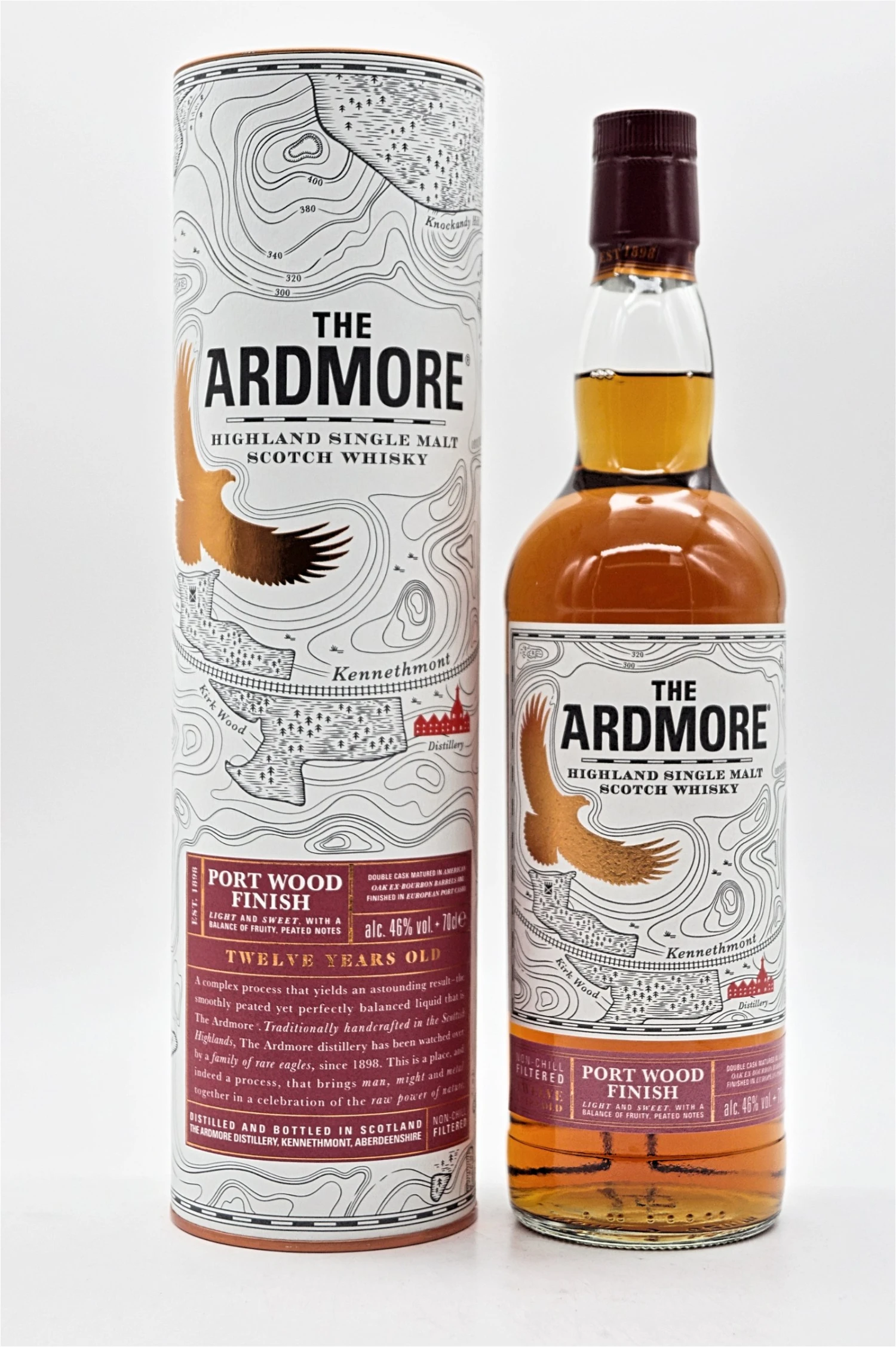 Der 12 jährige Ardmore Port Wood Finish reifte in Ex-Bourbonfässern aus amerikanischer Weißeiche und erhielt ein Finish in europiäischen Portweinfässern. Der Malt, welcher deutliche Rauchnoten aufweist, ist dadurch wunderbar fruchtig und komplex.