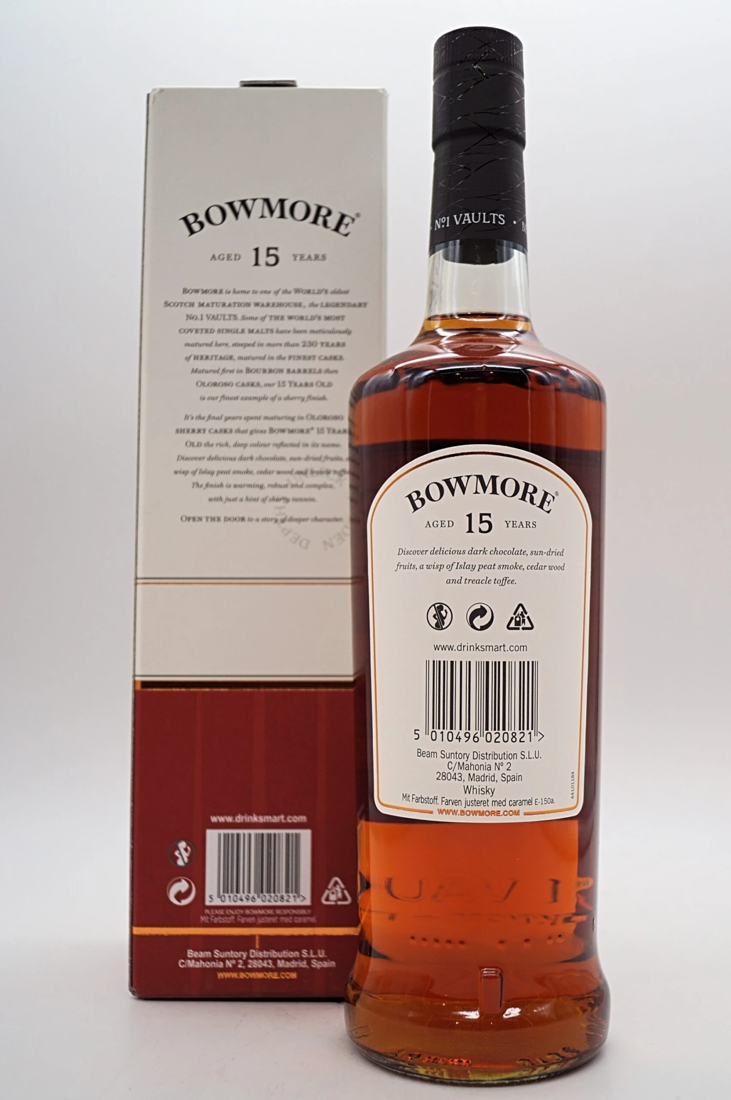 Seit 1779 wird inmitten der herben Schönheit von Islay, den rauen Seen und den Hebridenwinden Single Malt Scotch Whisky in Bowmore hergestellt. Die Brennmeister, die für ihre Arbeit die erlesensten und hochwertigsten Eichenfässer verwenden und die Tradition an die nächste Generation weitergeben, stellt Bowmore, Single Malt Scotch Whisky aus lediglich drei Zutaten her: Gerste, Hefe und Wasser.