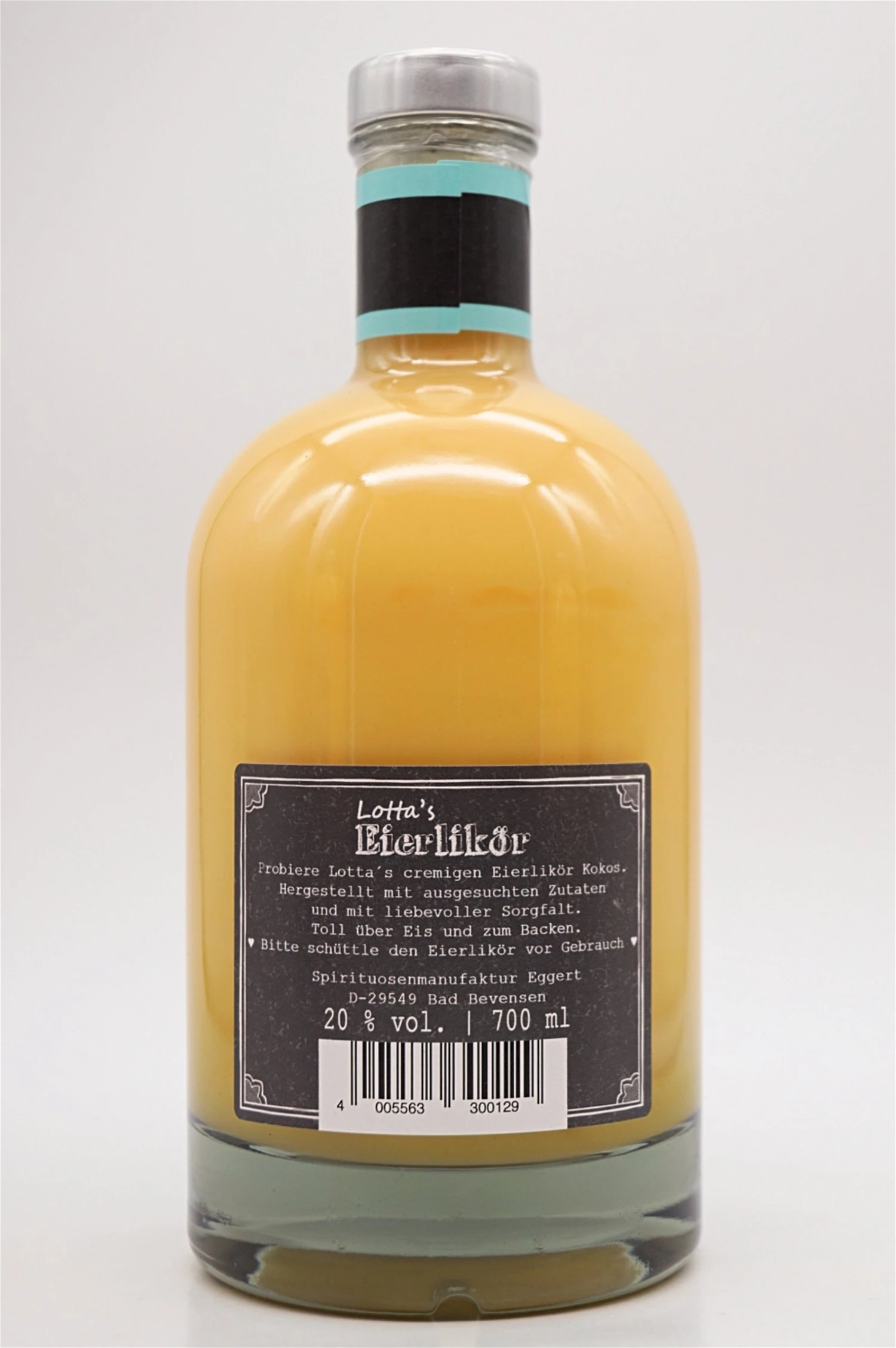 Der Eierlikör ist mit 20 % vol. Alkohol etwas höherprozentiger als der Eierlikör anderer Hersteller. Zum einen kannst Du damit viel besser und geschmacksintensiver backen, und zum anderen benötigt Lotta’s Eierlikör deshalb kein Mindesthaltbarkeitsdatum.