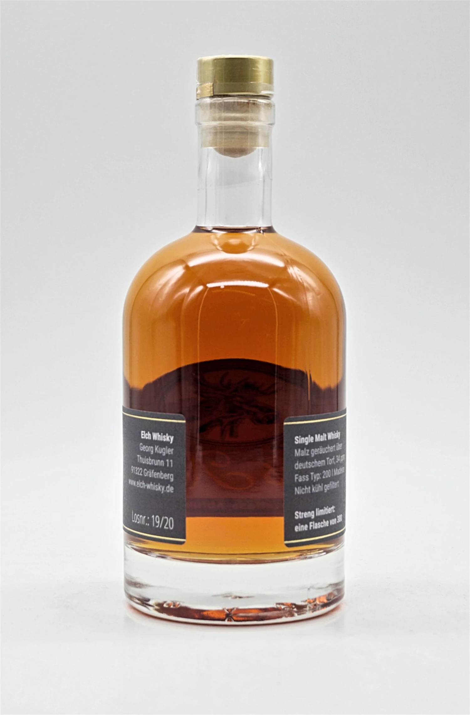 In der Brennerei in Thuisbrunn entsteht unter der Führung des vielfach ausgezeichneten Braumeisters und Edelbrandsomeliers Georg Kugler ein fränkischer Single Malt Whisky aus besten Zutaten. Charakteristisch für diesen Whisky sind die rauchigen Aromen, die sich durch das extra für die Brennerei hergestellte Malz entfaltet. Erstmals wurde Malz mit deutschem Torf (ppm 34) geräuchert, um eine einzigartige Whisky-Spezialität zu erschaffen. In der Brennerei wird dieses Malz zu Würze verarbeitet, 7 Tage vergoren und anschließend in der Verschlussbrennerei schonend gebrannt. Das entstandene Destillat wurde auf 59% Alkohol verdünnt, in ein 200l Ex-Madiera-Fass gefüllt und mindestens 3 Jahre gelagert.