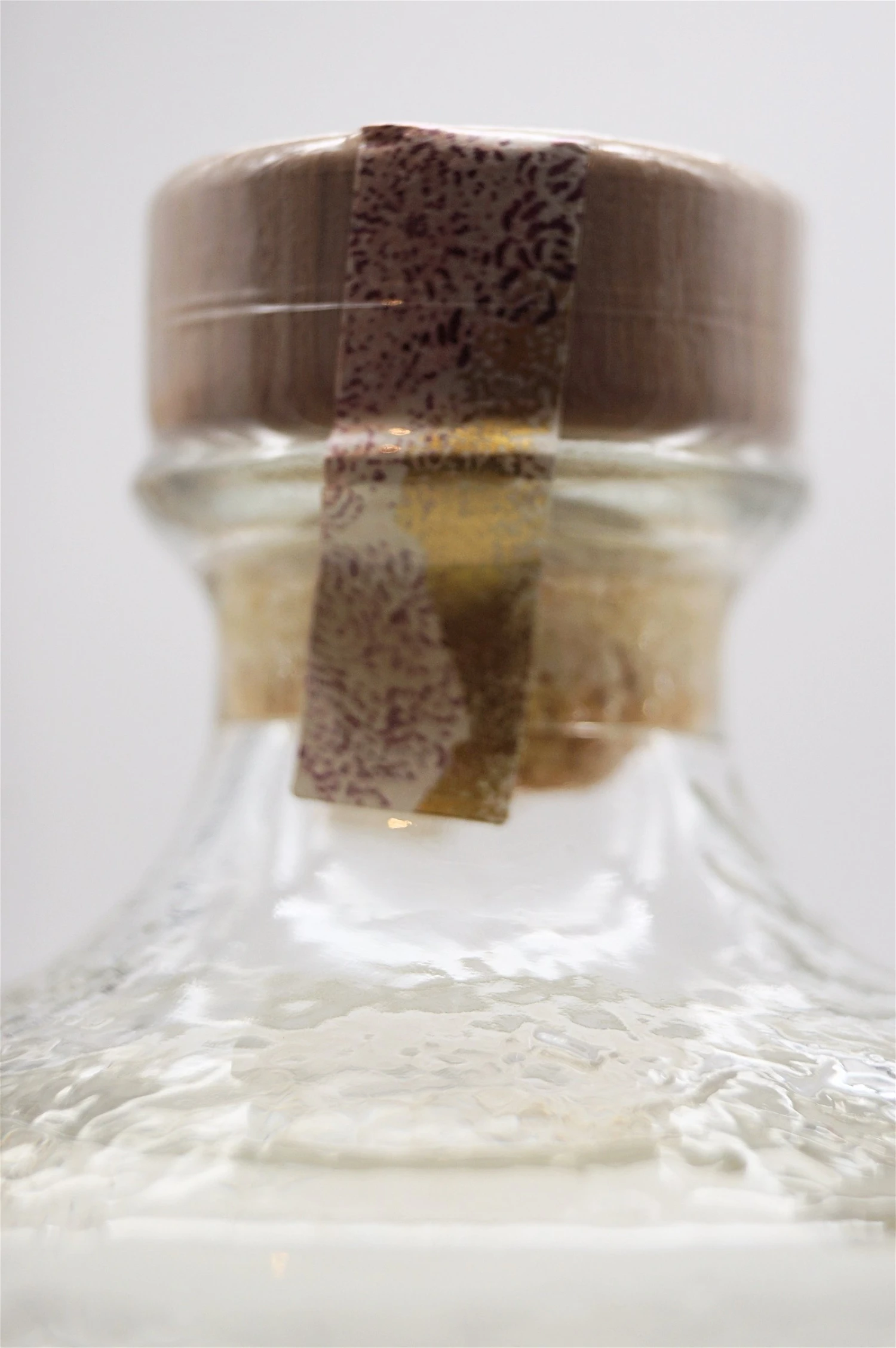 Die Flasche ist eine Glasform aus Wacholder, Felsen und Fossilien, die auf Raasay gefunden wurden.