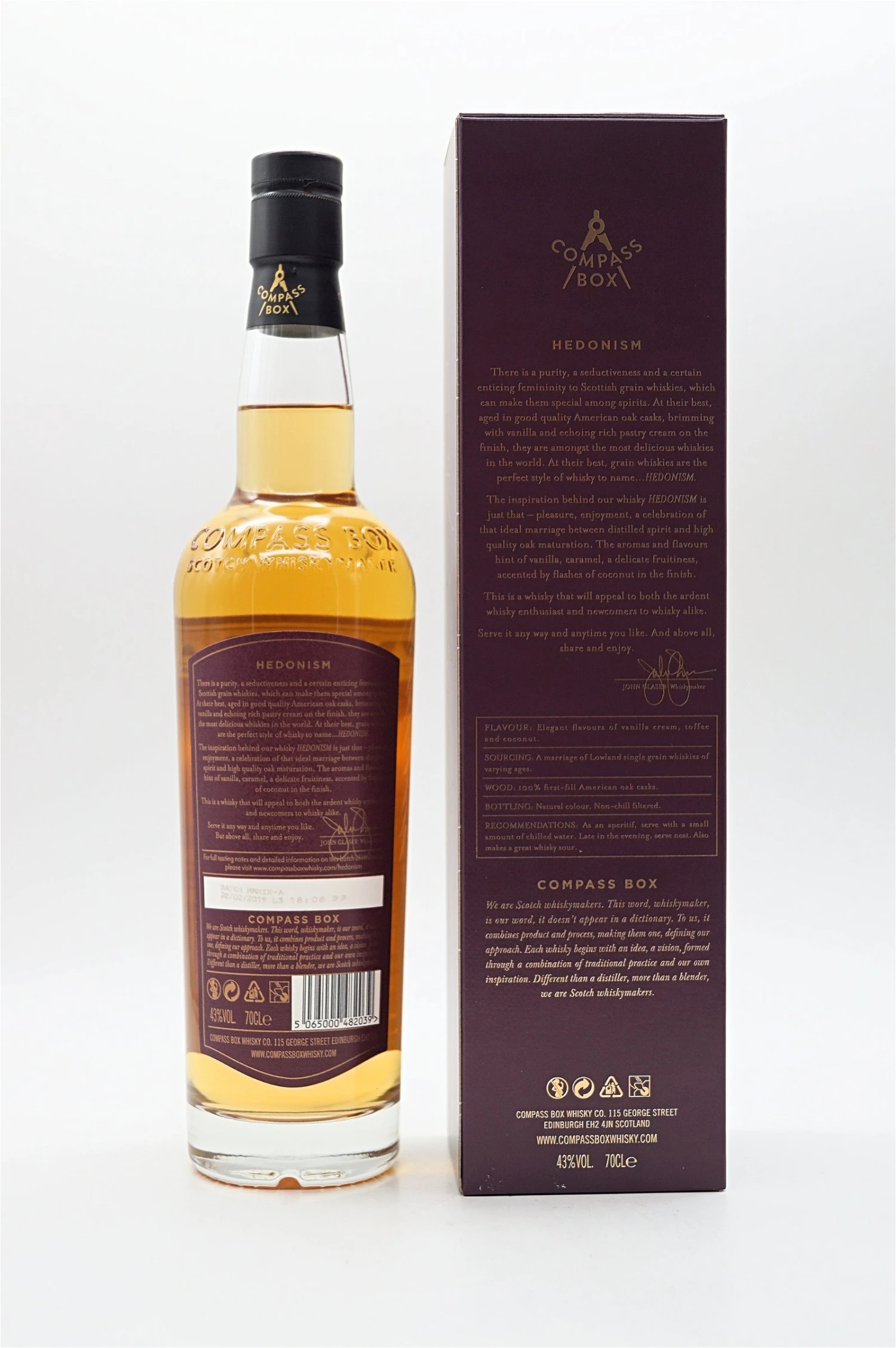 Der Hedonismus wird immer üppig, weich und cremig sein, aber jedes Jahr verwendet die Distillerie verschiedene Whiskys in verschiedenen Kombinationen, um dies zu erreichen. Die Inspiration hinter dem Whisky HEDONISM ist Vergnügen, Genuss, eine Feier dieser idealen Verbindung zwischen destilliertem Spiritus und hochwertiger Eichenreifung.