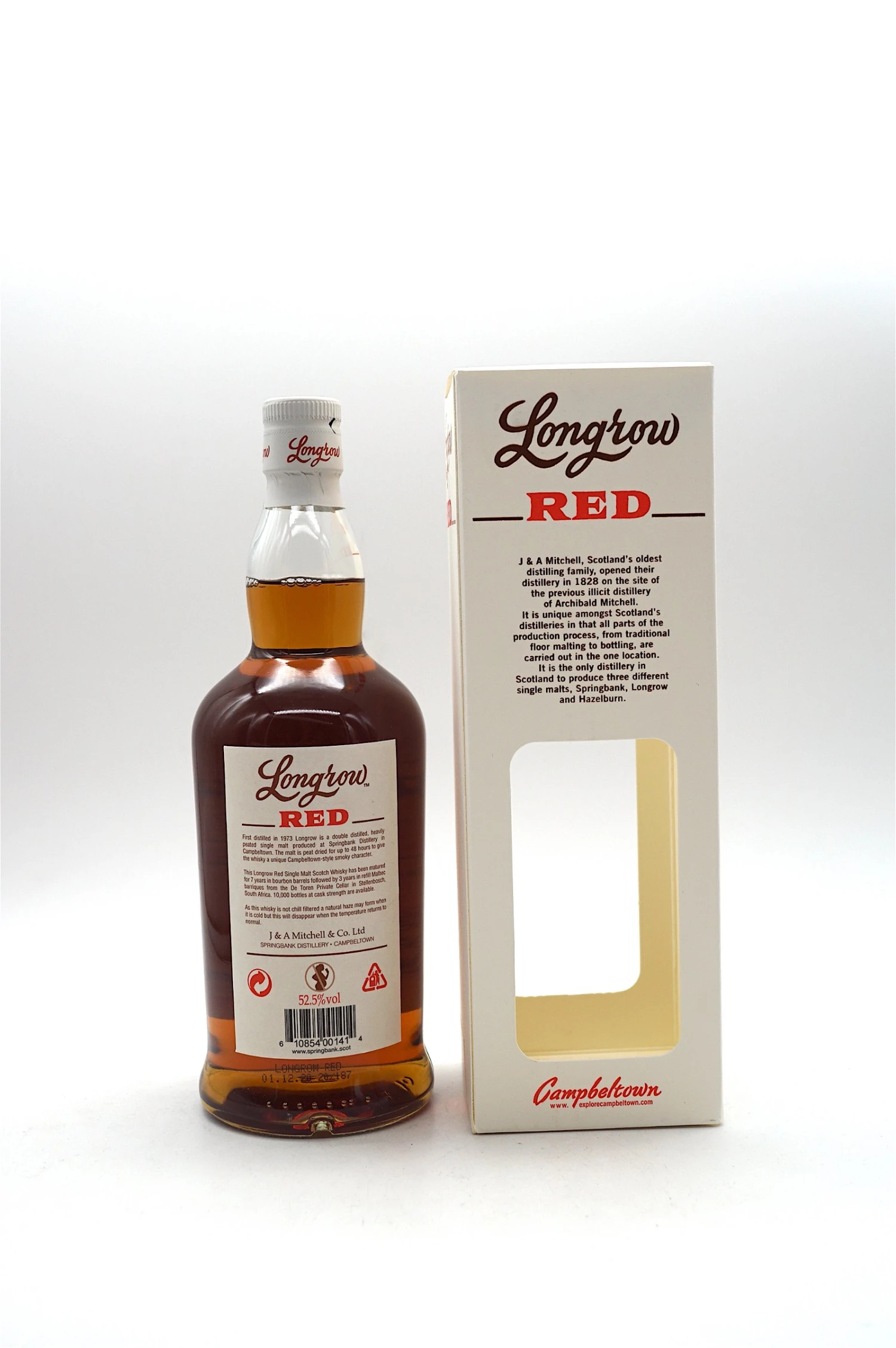 Der Longrow Red, immer in Fassstärke abgefüllt, wird jährlich in kleinen Mengen veröffentlicht und jedes Jahr wird eine andere Art von Rotweinfass verwendet, um den Whisky zu reifen.