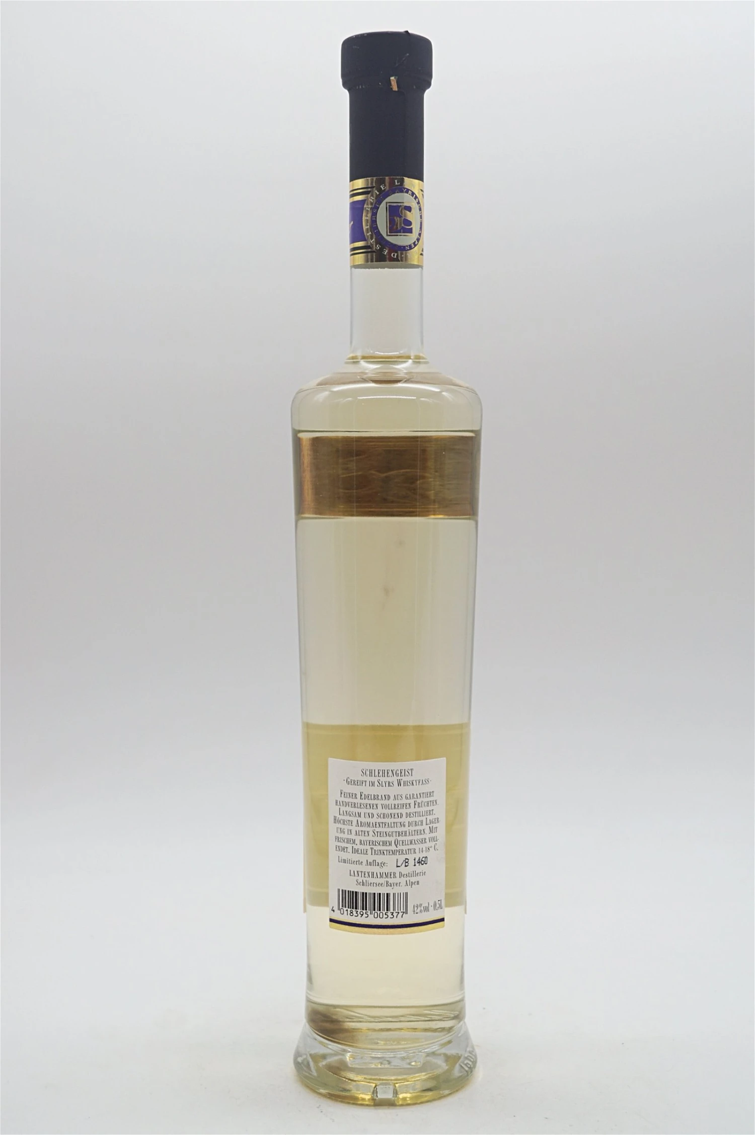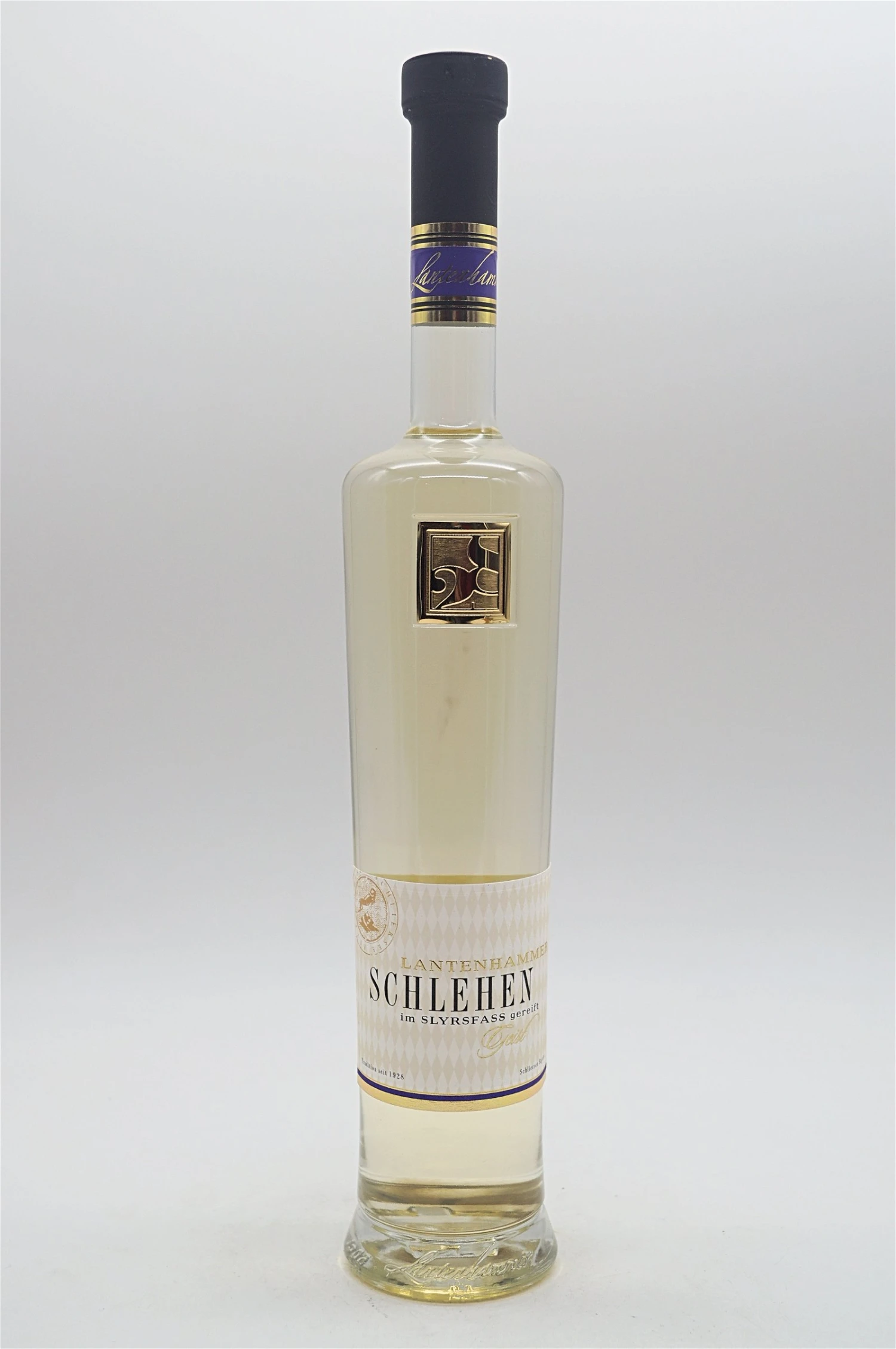 Der Lantenhammer Schlehengeist im Slyrsfass zeichnet sich durch einen vollmundigen Geschmack mit feinen Mandelnoten aus. Erst nach der Reifung in Whiskyfässern erhält er seine leicht holzige Note. Die Schlehe wächst wild an Wegen und Waldrändern. Die kleine, blaue Steinfrucht wird für diesen Schlehengeist, daher überwiegend wild gesammelt.