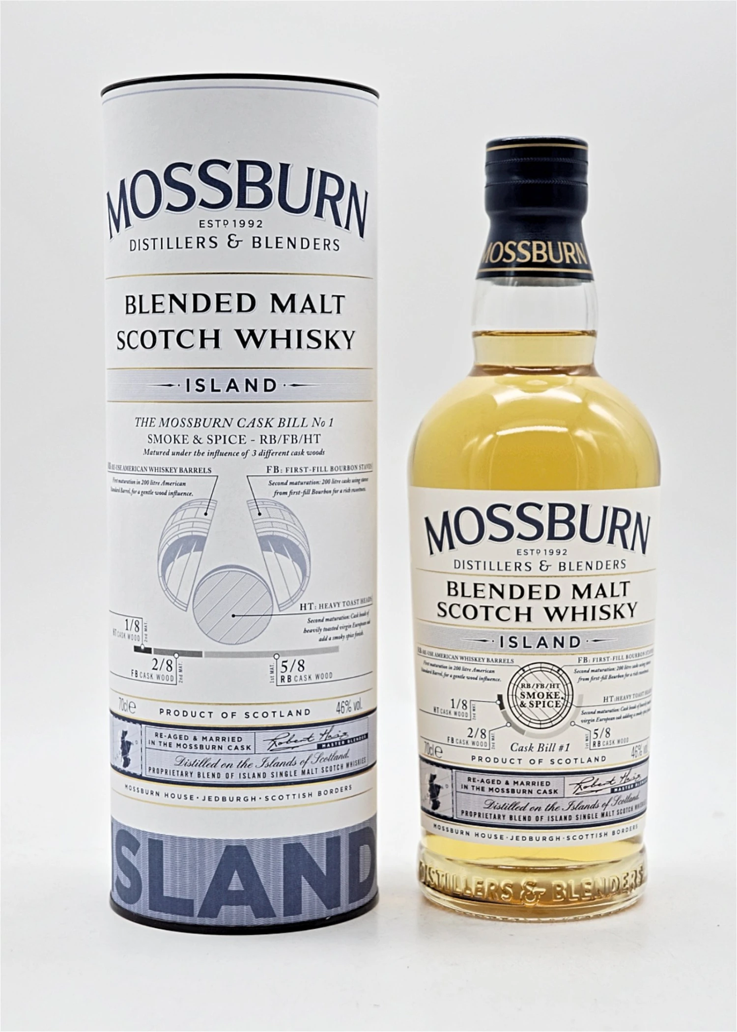 Die Signature Cask Blended Malts dieser Whisky Reihe präsentieren die klassischen regionalen Aromen und auch typische Merkmale der ausgewogenen und komplexen Scotch Malt Whiskys. Sie sind klassische Ausdrucksformen ihrer Herkunft, mit weiterem Einfluss von unseren „Signature-Fässern“, die speziell entwickelt wurden, um die Eigenschaften, die wir in jedem dieser beispielhaften Malts suchen, zu verbessern. Die Whiskys wurden zuerst in amerikanischen Eichenfässern vor ihrer ersten Blend gereift und dann für eine zweite Periode in einem speziell maßgeschneiderten Mossburn Cask mit spezifischen Fassdeckel gereift.