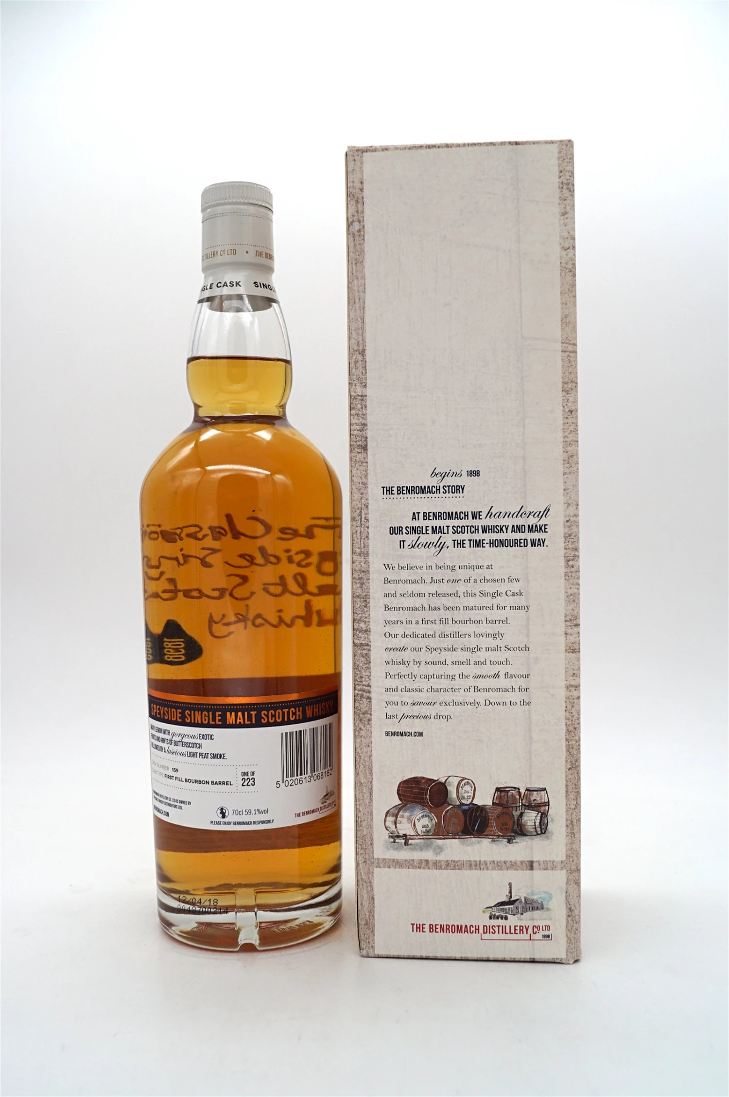 Bei Benromach glauben sie daran, einzigartig zu sein. Als einer von wenigen Auserwählten und nur selten veröffentlichten, reifte dieser Single Cask Benromach viele Jahre in einem Fist Fill Bourbon Fass. Die engagierten Destillateure kreieren diesen Speyside Single Malt Scotch Whisky liebevoll durch Klang, Geruch und Berührung. Er fängt den weichen Geschmack und den klassischen Charakter von Benromach perfekt ein, damit Sie ihn exklusiv genießen können. Bis hin zum letzten kostbaren Tropfen.