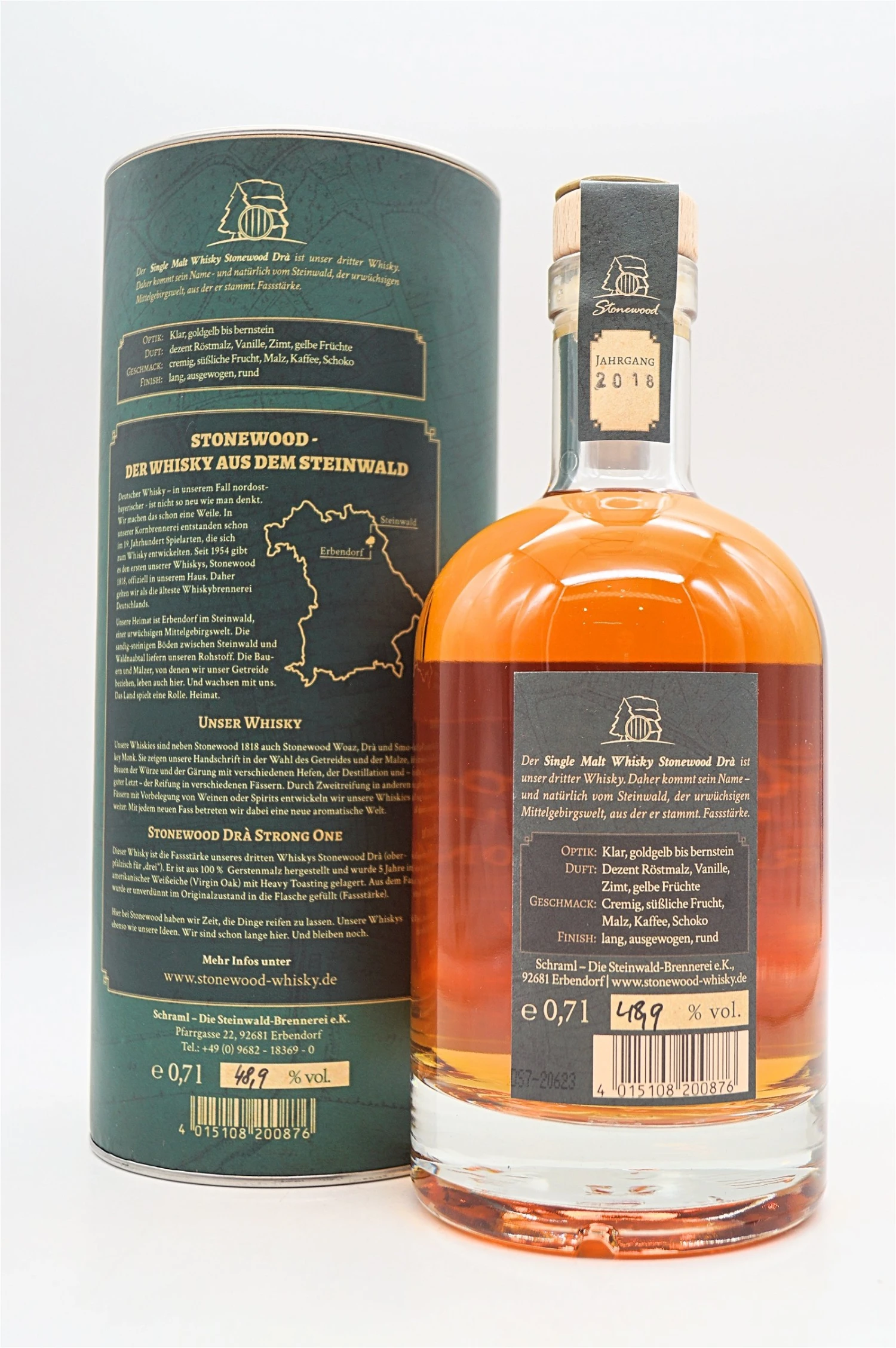 Der 5 Jahre alte Dra Strong One Single Malt Whisky wird im Vergleich zu dem klassischem Dra Strong mit 48,90% Vol. abgefüllt und kann so die Aromen von Kaffee, Malz und Schokolade noch besser binden.