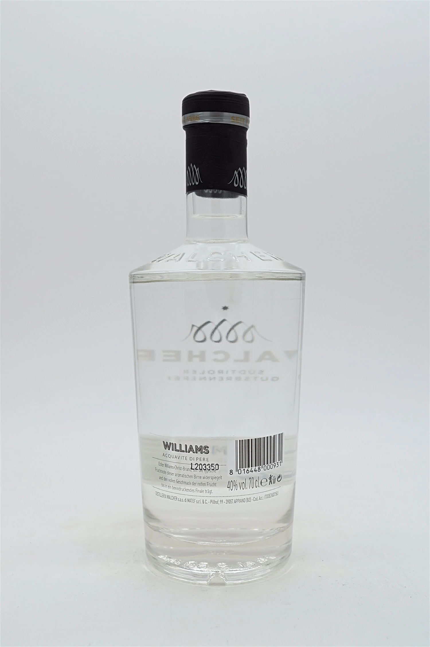 Fruchtig und besonders mild präsentiert sich der Williams Christ Edelbrand am Gaumen. Er ist ein Klassiker unter den Südtiroler Edelbränden. Die Brennerei Walcher liegt in der Nähe von Bozen, wo ein mildes und mediterranes Klima herrscht. Die Sommer sind sehr heiß und die Winter mild, wodurch die Obstbäume ein optimales Klima vorfinden um aromatische, vollreife Früchte zu produzieren. Dies ist ein feiner Edelbrand ausschließlich aus handverlesenen vollreifen Früchten produziert. Er wurde während dem Herstellungsverfahren zweimal destilliert.