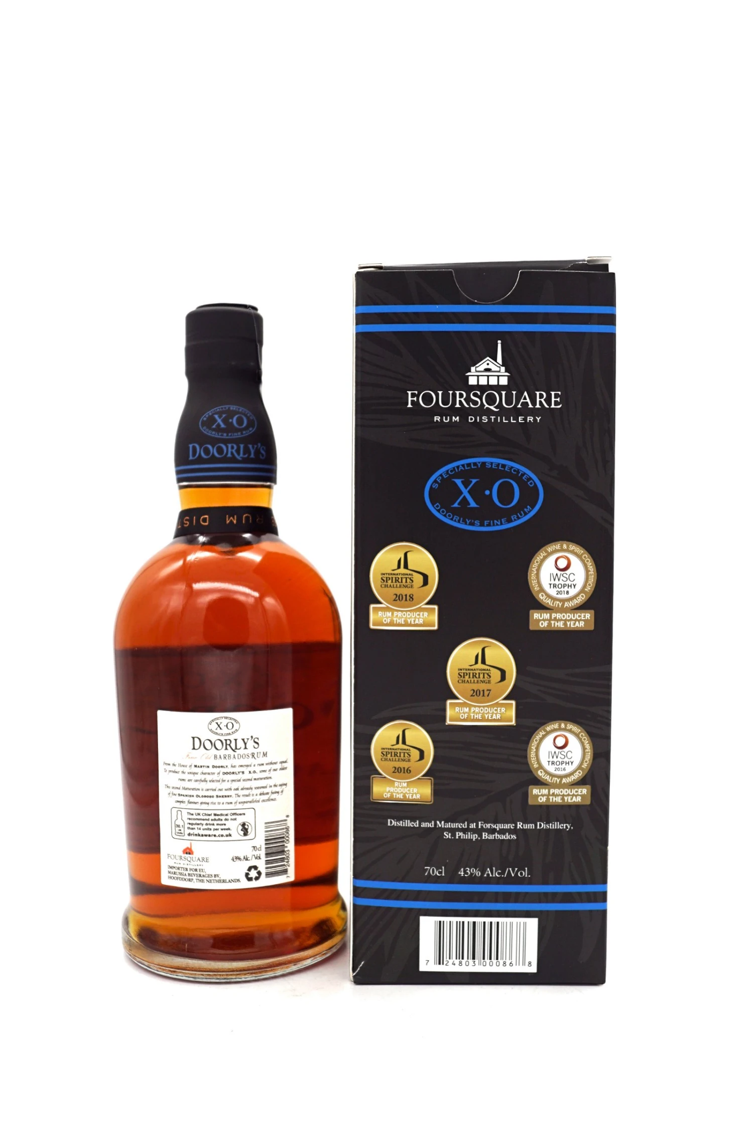 Um den Doorly’s XO zu kreieren, wählt der Master Blender besonders lang gereifte Rumqualitäten aus, um Beschreibungsie nach dem Vermählen für ein weiteres Mal in handverlesenen spanischen Oloroso Sherryfässern zu verfeinern. Hier entsteht diese wunderbare Verbindung zwischen komplexen Aromen, Frucht und der großartigen Eleganz von perfekt gereiftem Rum. Hersteller der Linie Doorly’s ist die Foursquare Distillery.